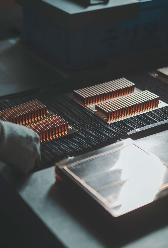主に銅製の熱交換器を溶接技術を用いて製造しています。熱伝導性が高いため難しいとされる銅材料の溶接を、確かな職人技術によって高品質で実施します。